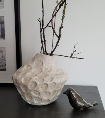 Ceramiczny wazon. Dzięki kształtowi, fakturze i niejednolitym barwom tworzy unikatowe naczynie zdobiące wnętrza w każdym stylu. Wazon w swej surowości, prostocie, pełnych kształtach i brązowych kolorach przywołuje uczucie ciepła i naturalności zwykłego domu. Szkliwo satynowo-matowe.