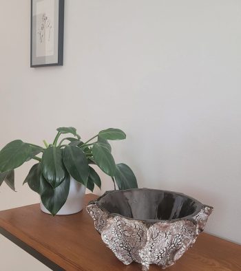 Ceramiczny wazon z uchwytem to naczynie, które urozmaici i ożywi kolorystycznie każde wnętrze. Niejednolite, zielone plamy na żółtym tle czynią go ciekawym z każdej strony. Wazon pięknie wygląda z kilkoma suchymi roślinami lub może po prostu być ciekawą, przyciągającą wzrok ozdobą regału czy komody. Szkliwo błyszczące.